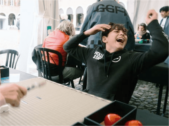 指先を使うだけの簡単な競技なので、年齢・性別・国籍・障がい・体格などに関わらず誰もが対等に勝負できます。